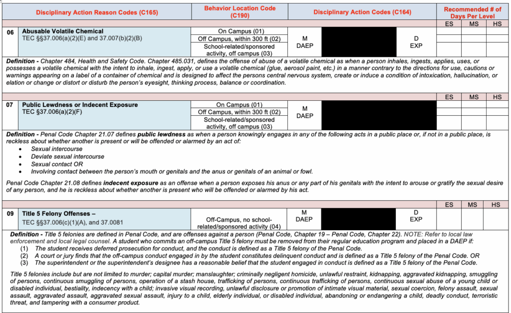 - This document also provides everything a campus administrator needs in one place to help them determine the updated definitions of Chapter 37 offenses, locations, and actions.
